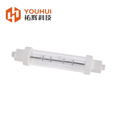 গরম অ্যাপ্লিকেশন জন্য স্বচ্ছ কোয়ার্টজ টিউব ইনফ্রারেড ল্যাম্প R7S IR halogen emitters। পেইন্টিং শুকানোর এবং অন্যান্য শিল্প গরম করার প্রক্রিয়া জন্য স্বচ্ছ R7S বেস সঙ্গে গ্লাস টিউব ইনফ্রারেড হিটার।
